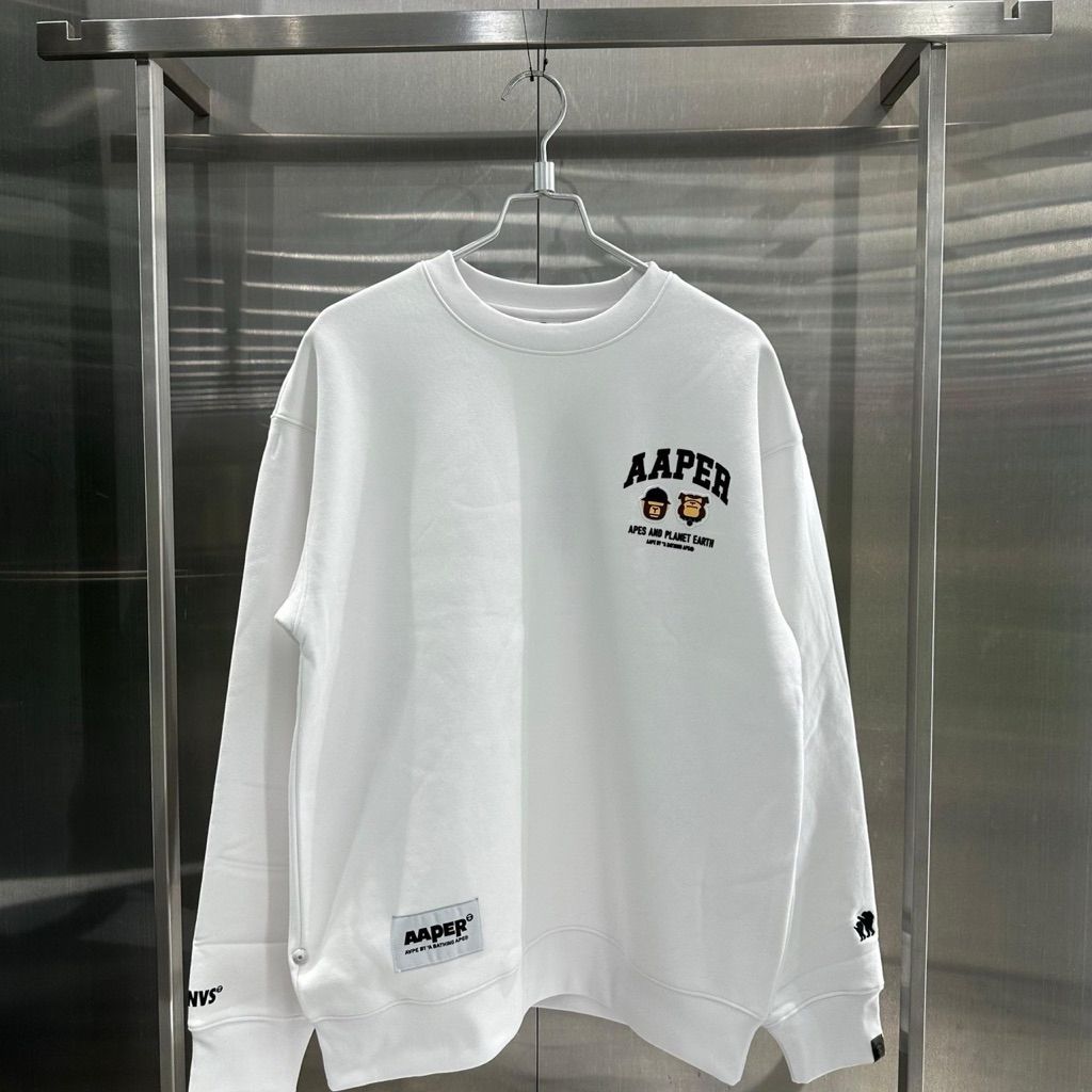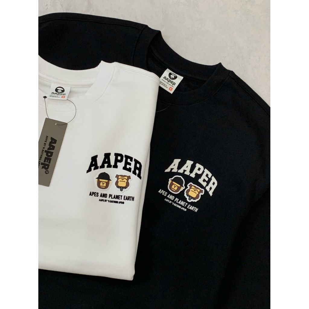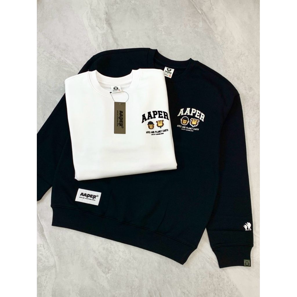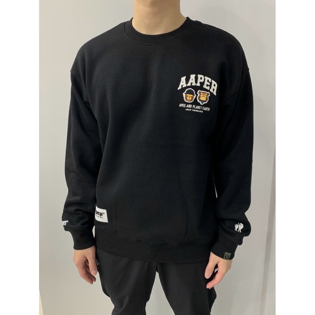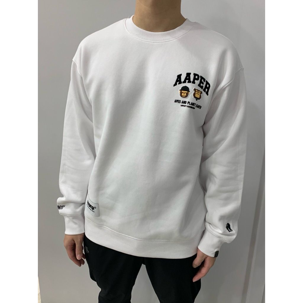 Limit精品✔️Aape 卡通猿猴設計 Q版 黑色 白色 內刷毛 長袖 大學t