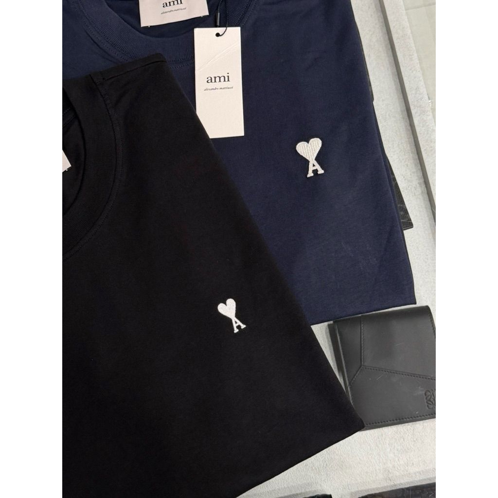 Limit精品✔️Ami 新款 刺繡白色小愛心設計 黑、深藍 短袖T恤素t