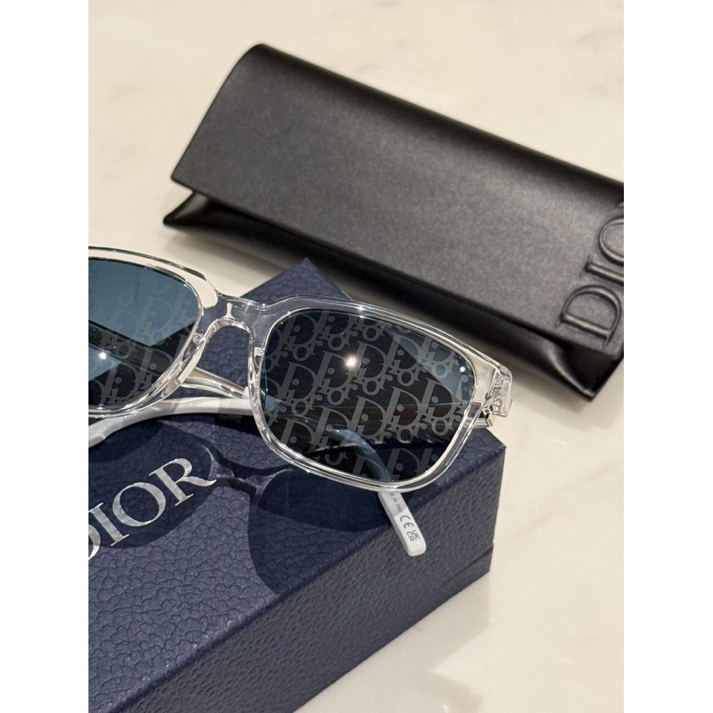 DiorTag SU 太陽眼鏡展現鮮明的都會風格。水晶色調長方形細鏡框搭配水晶色調和銀色飾面金屬鏡腳,透明設計飾有 Christian Dior 標誌,形成巧妙對比。藍色 Dior Oblique 鏡面鏡片和白色鏡腳為設計增添休閒風格。