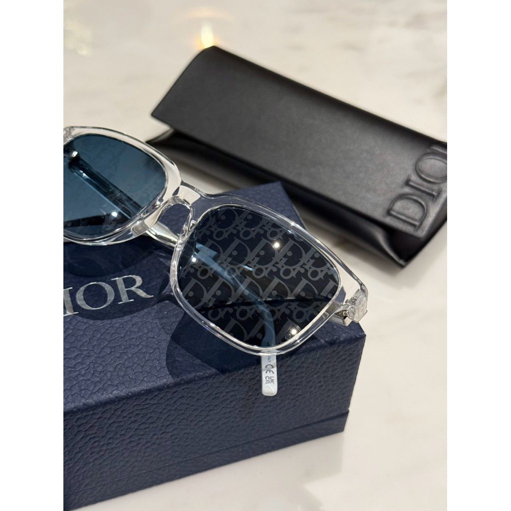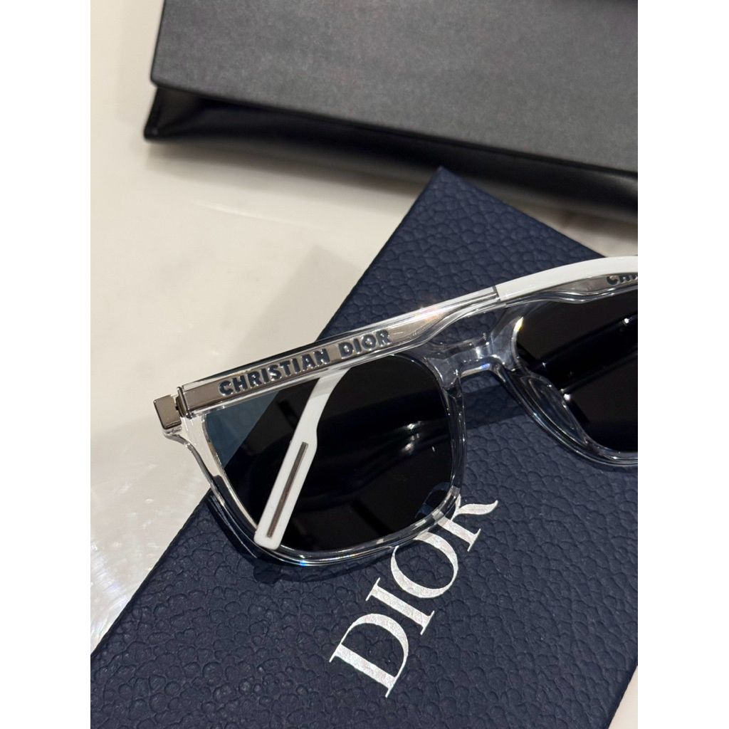 水晶色調和銀色飾面金屬鏡腳搭配藍色 Christian Dior 標誌