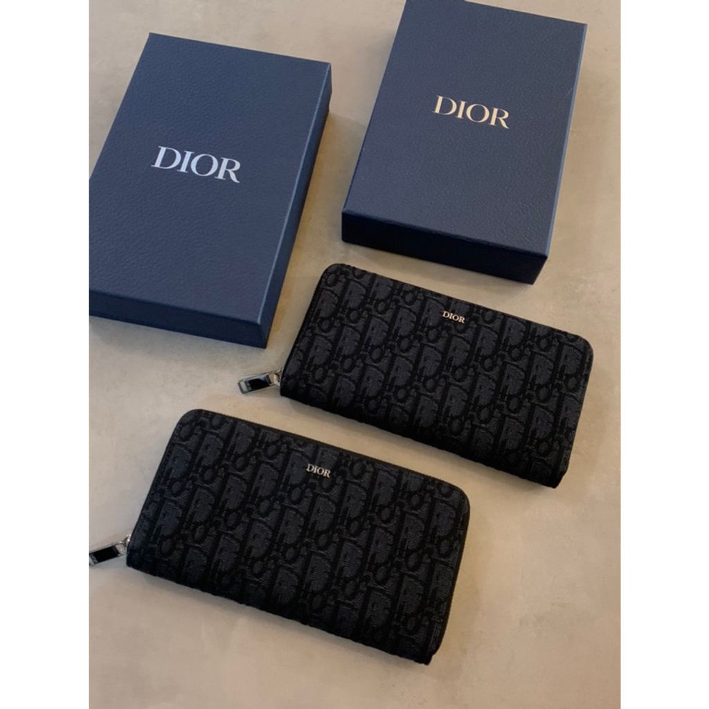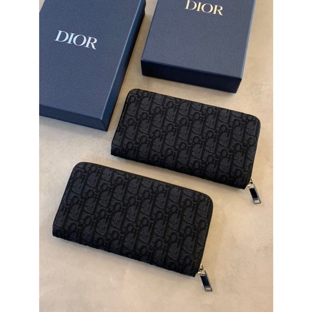Limit精品✔️Dior 經典刺繡緹花滿版Logo搭配銀色立體字母Logo設計 黑色 男生 男款 拉鍊式 皮夾 長夾