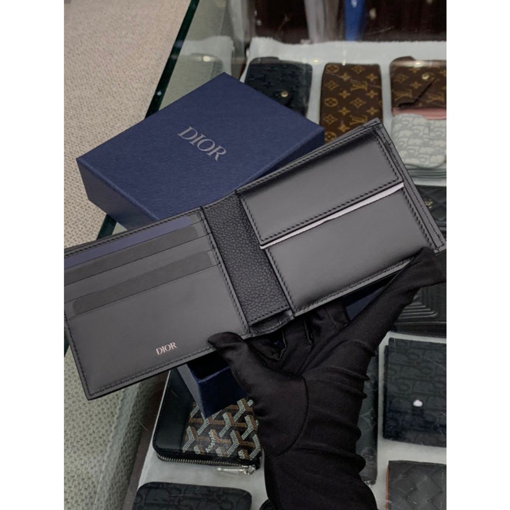 Limit精品✔️Dior 經典 黑色壓紋滿版設計零錢袋內裏 男生 男款 皮革 真皮 材質 皮件 短夾