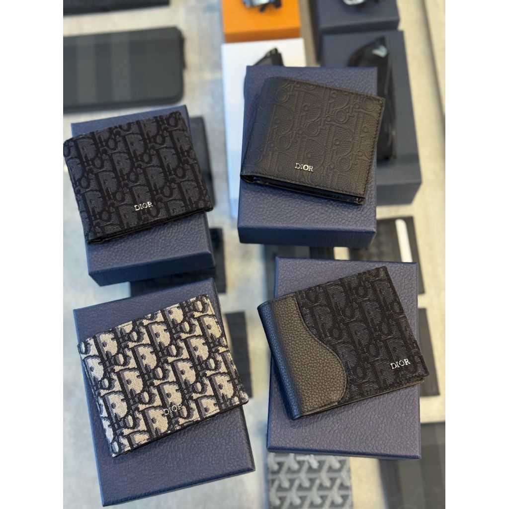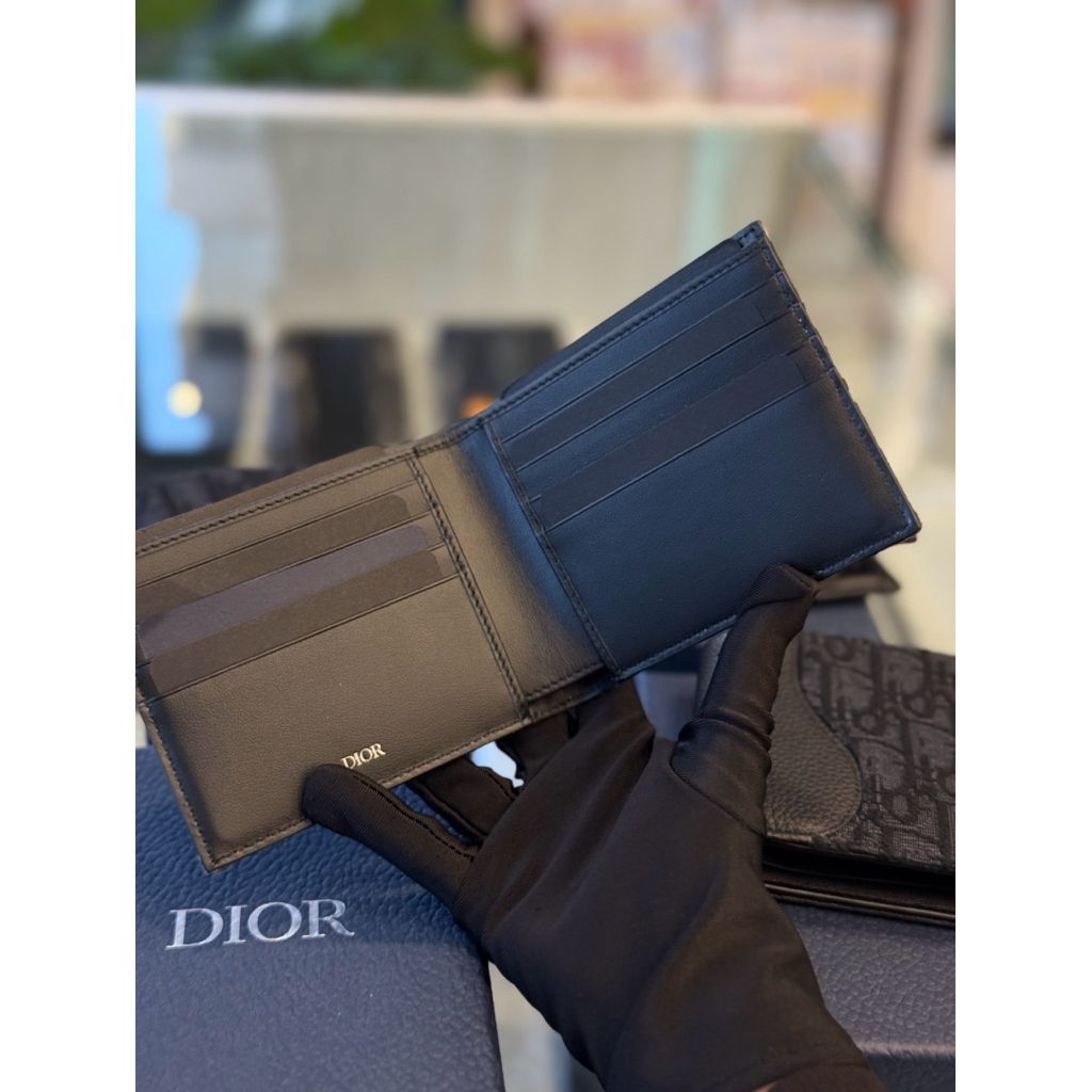Limit精品✔️Dior 經典 黑色、卡其刺繡滿版,皮革滿版設計 立體logo 男生 零錢袋 八卡 短夾