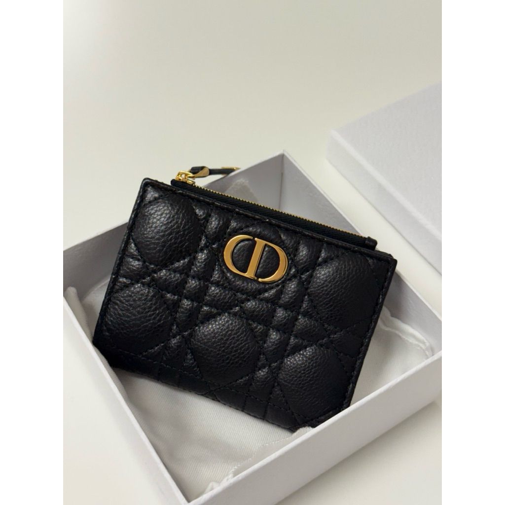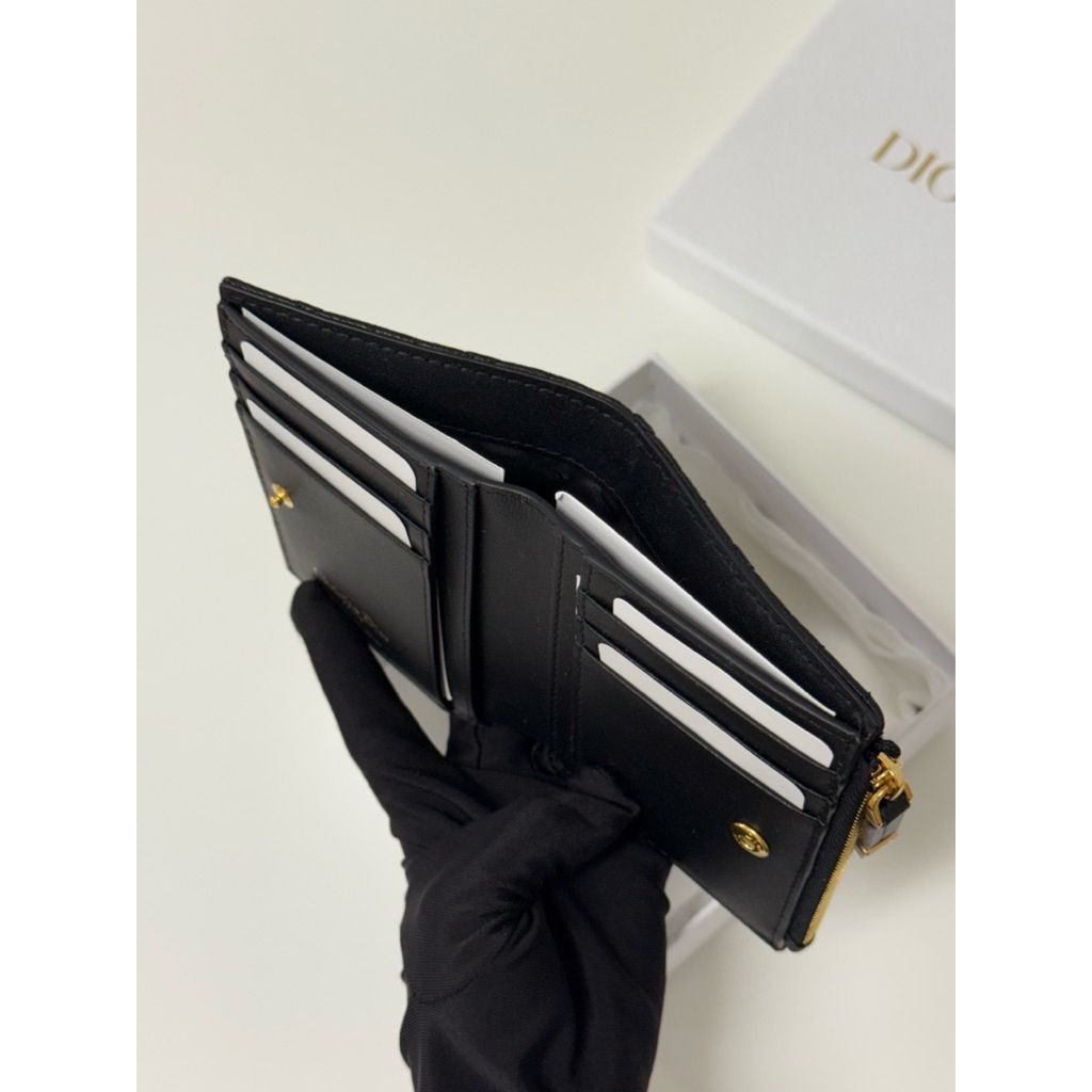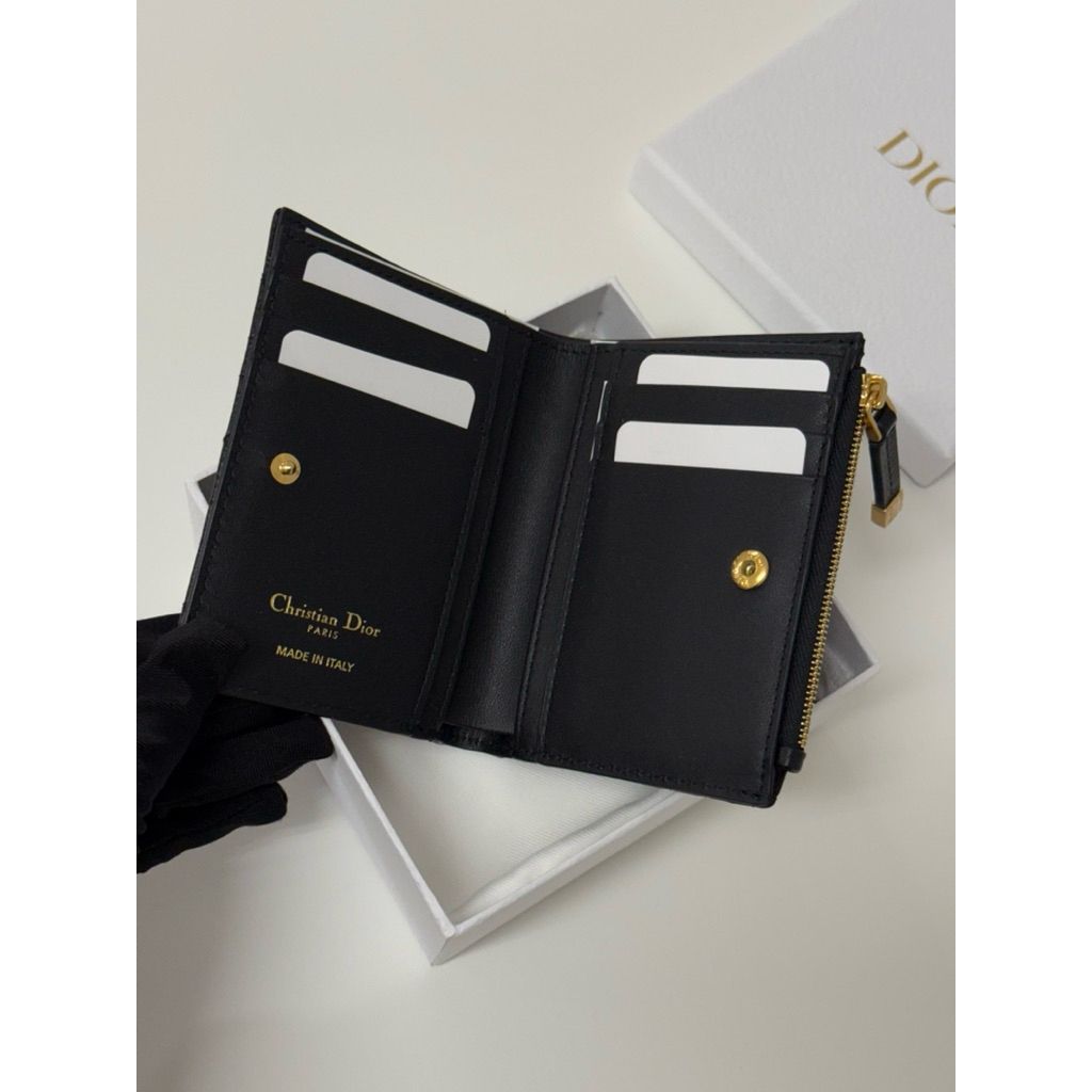 Limit精品✔️Dior 經典 黑金配色 柔軟小牛皮材質 女生 對開 短夾
