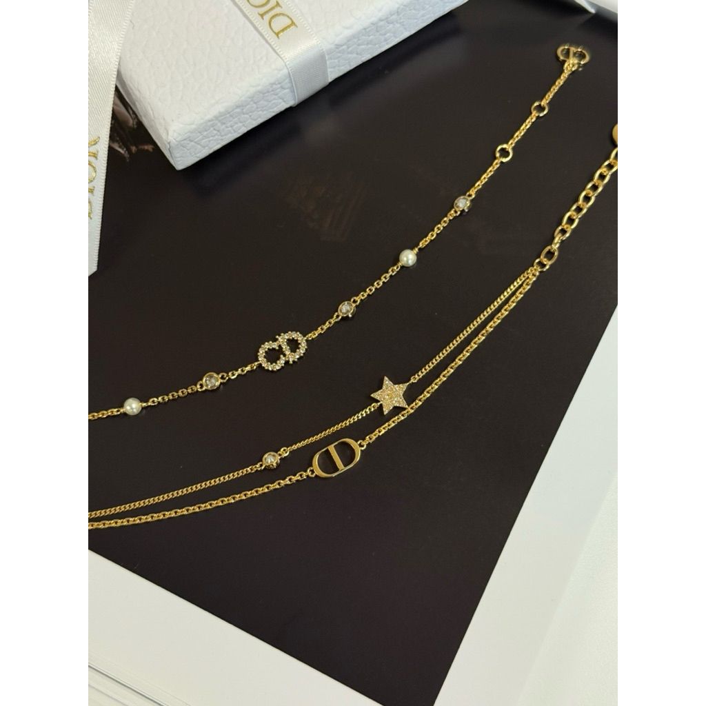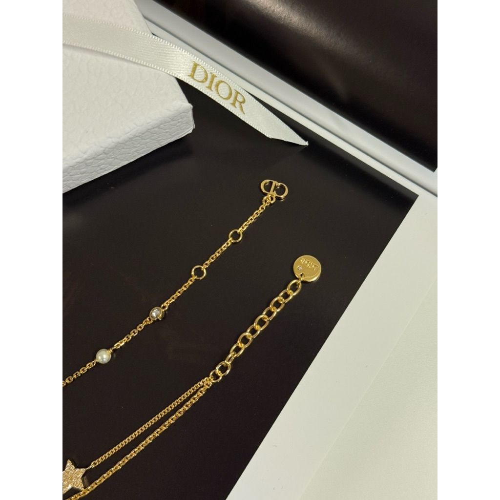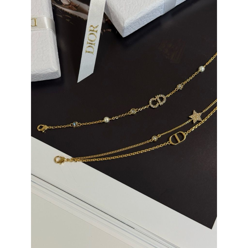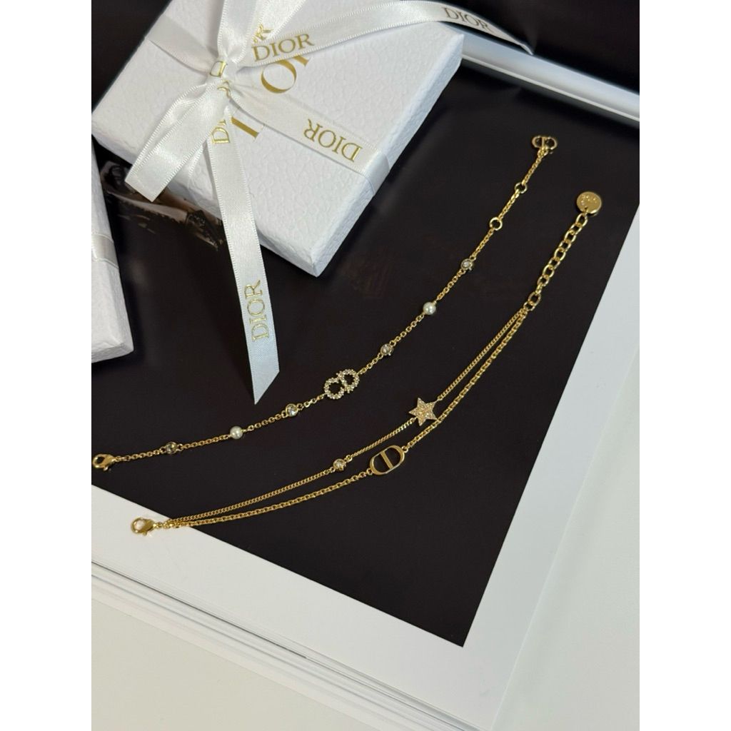 Limit精品✔️Dior 經典CD Logo、星星設計 金色 女生 雙鏈 手鍊