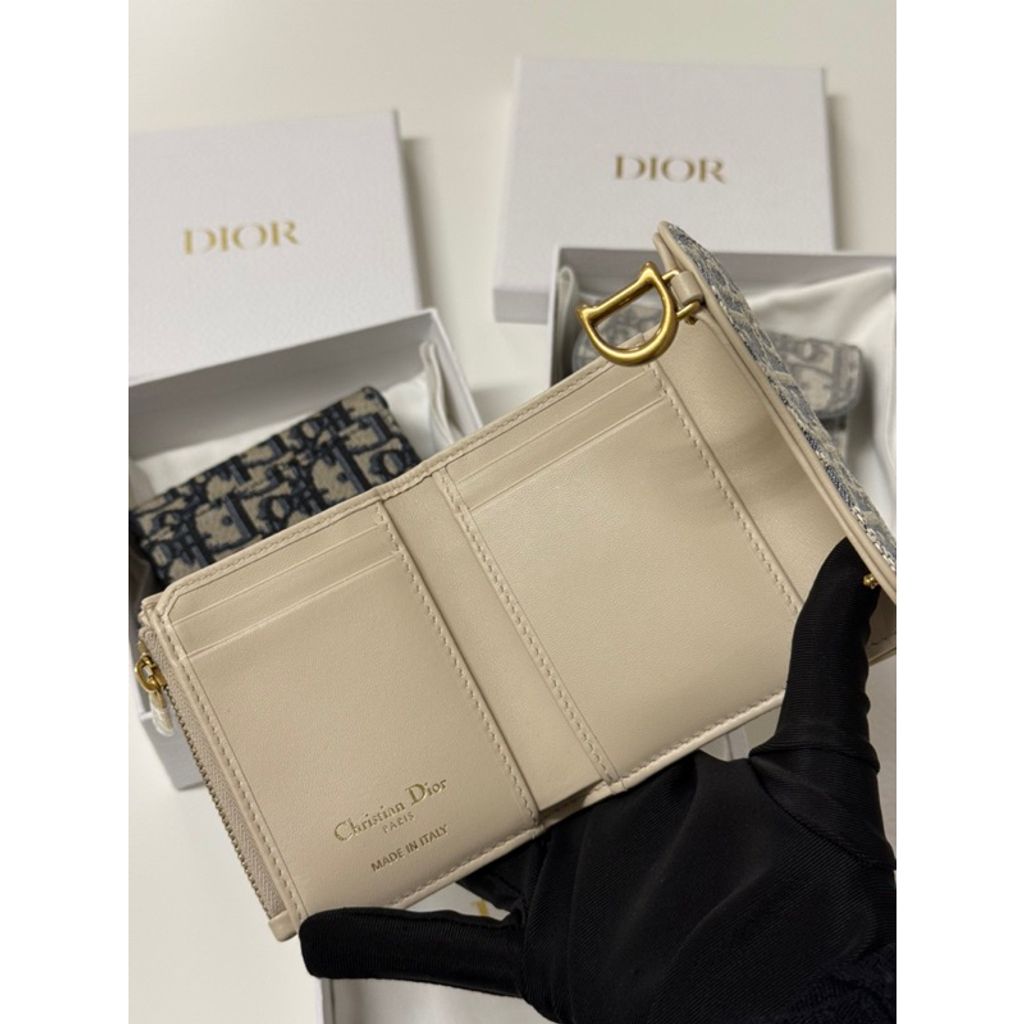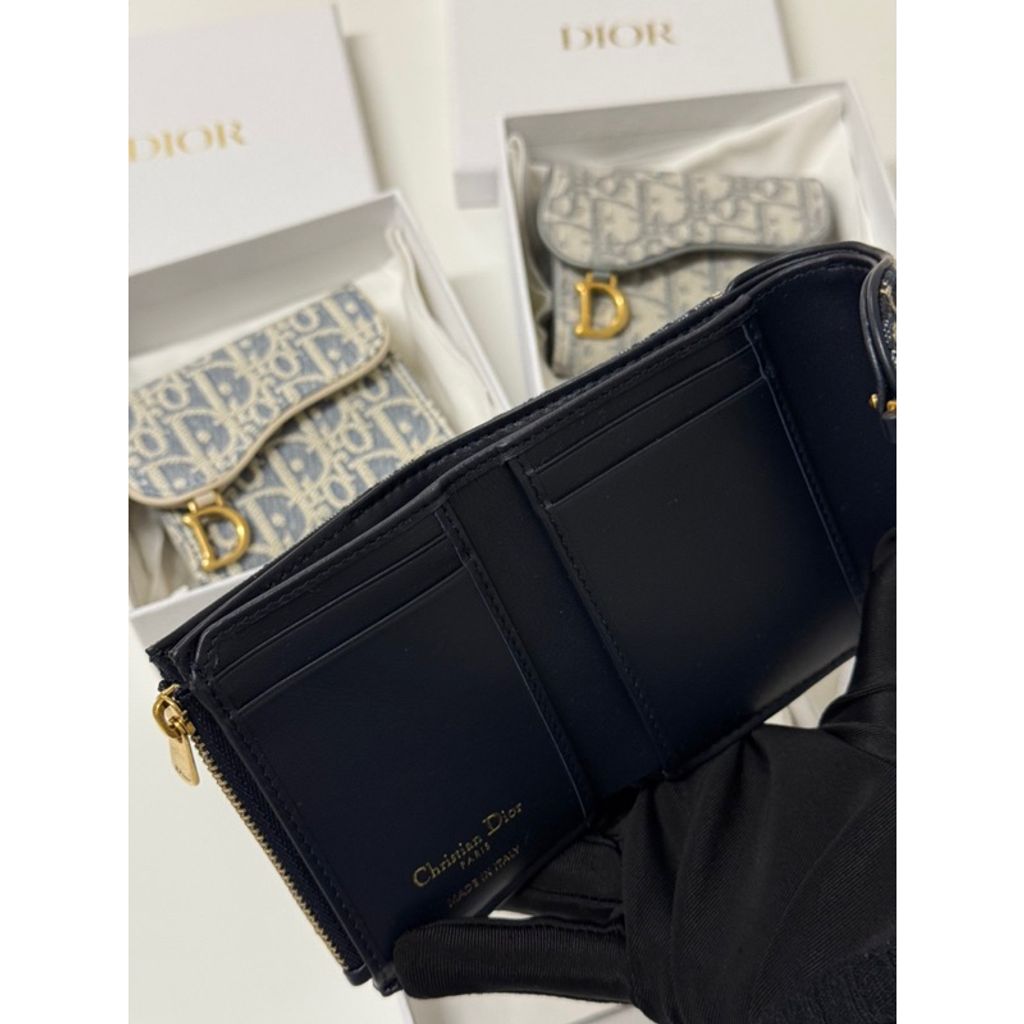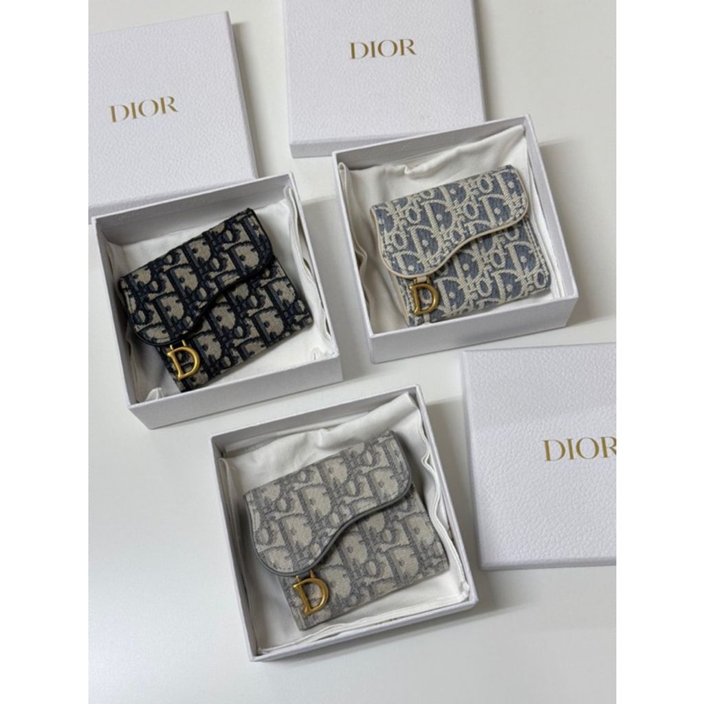 Limit精品✔️Dior 迪奧 經典緹花老花Logo 馬鞍系列 深藍 灰色 三折 女生 女款 皮夾 短夾