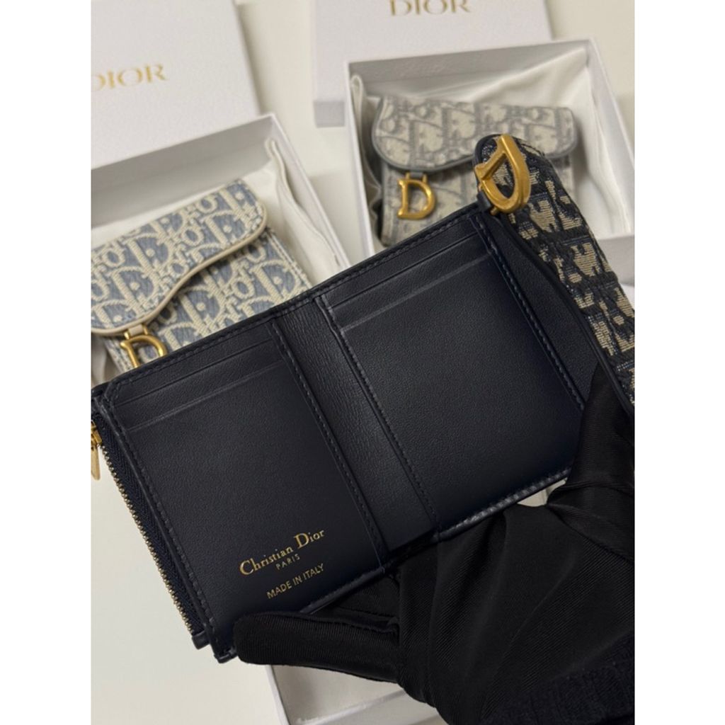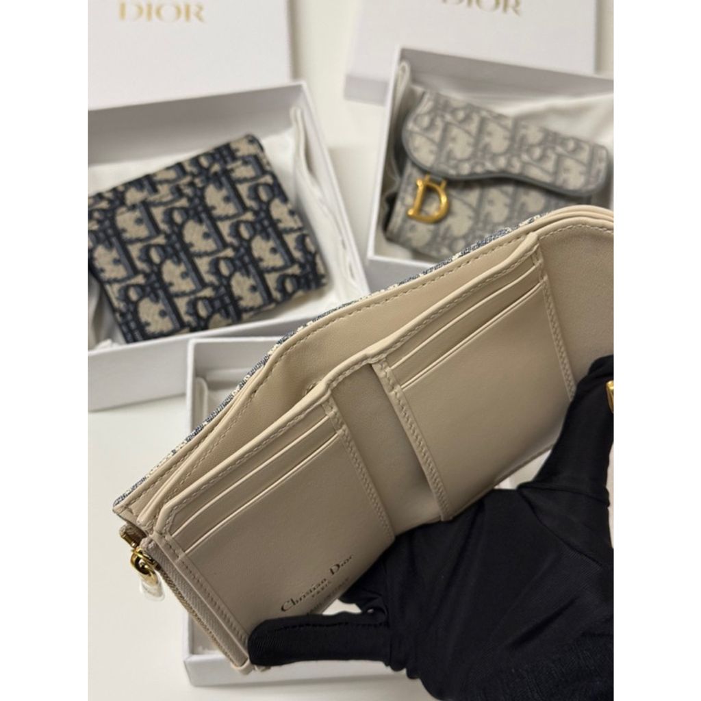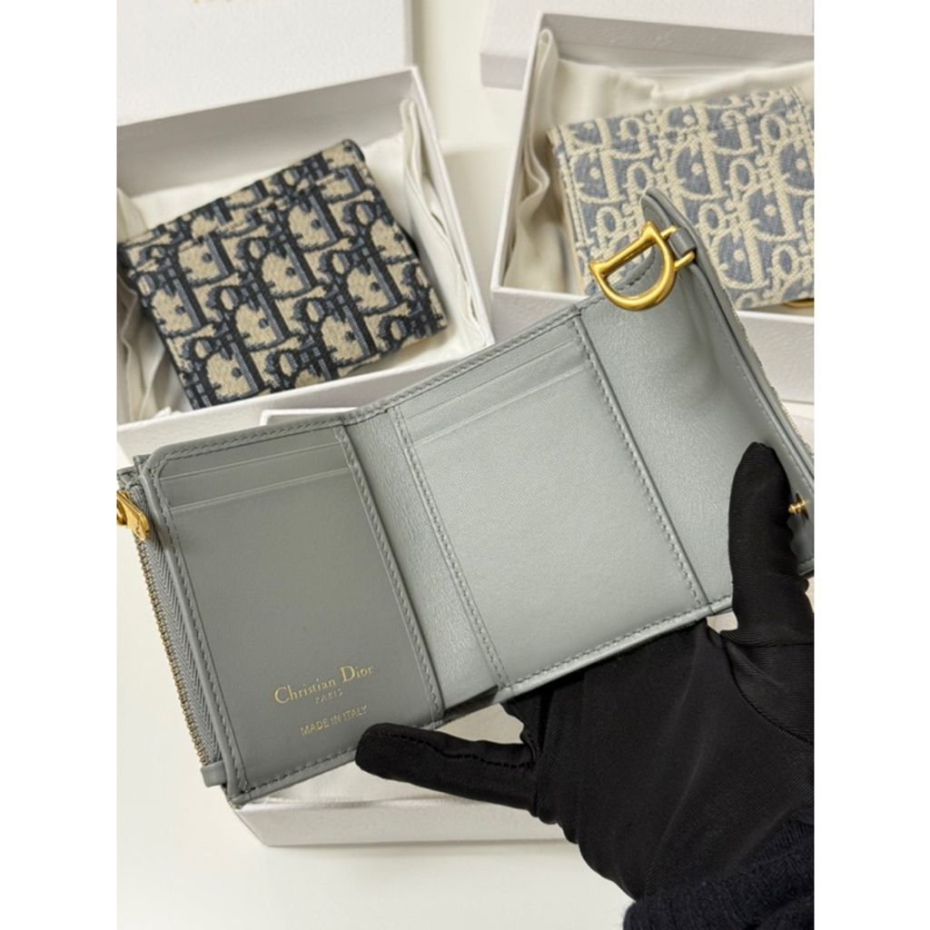 Limit精品✔️Dior 迪奧 經典緹花老花Logo 馬鞍系列 深藍 灰色 三折 女生 女款 皮夾 短夾