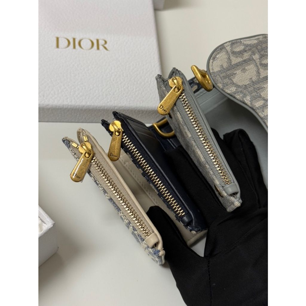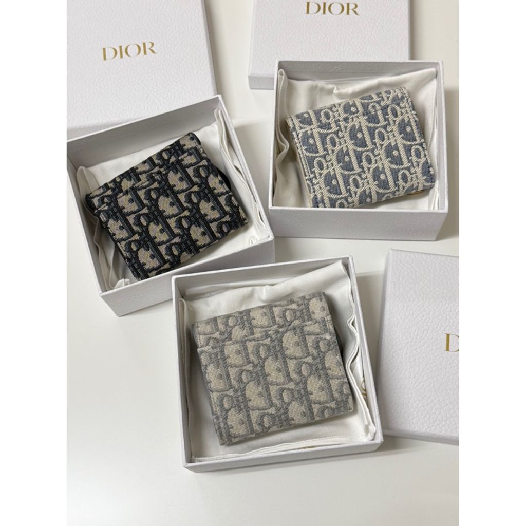 🔥藍色 、灰色 Dior Oblique 提花製成 搭配金色 小logo設計 馬鞍短夾