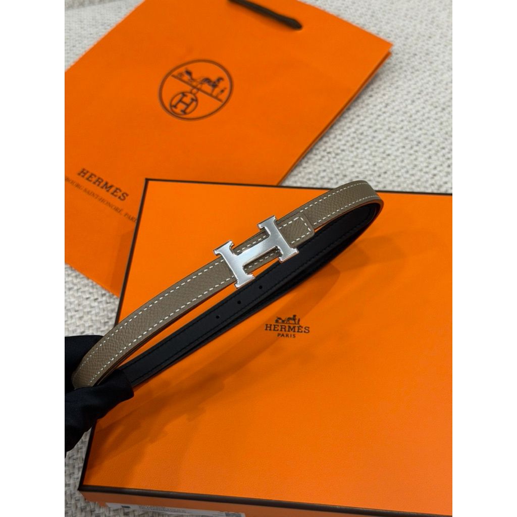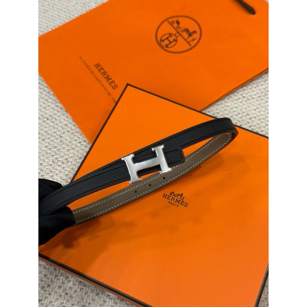 Limit精品✔️Hermes 愛馬仕 經典H logo銀頭 女生 皮帶黑搭配大象灰 寬1.3cm