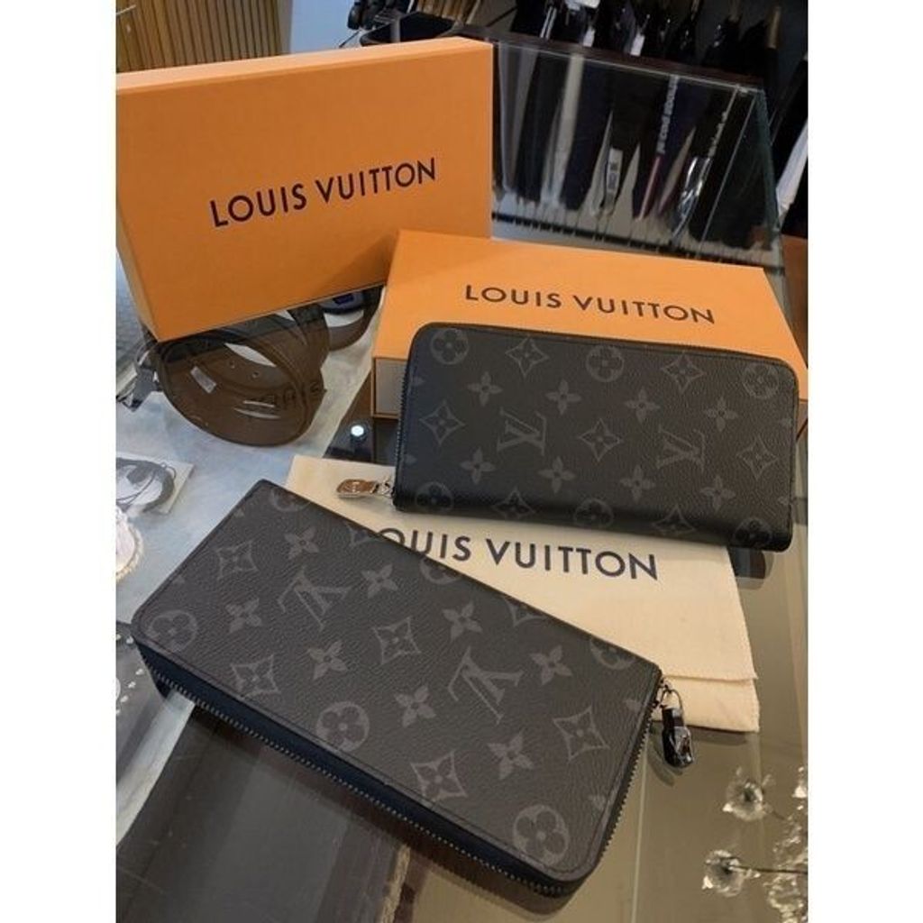 Limit精品✔️Louis Vuitton LV經典滿版黑色老花Logo設計 男生 男款 拉鍊 皮夾 長夾
