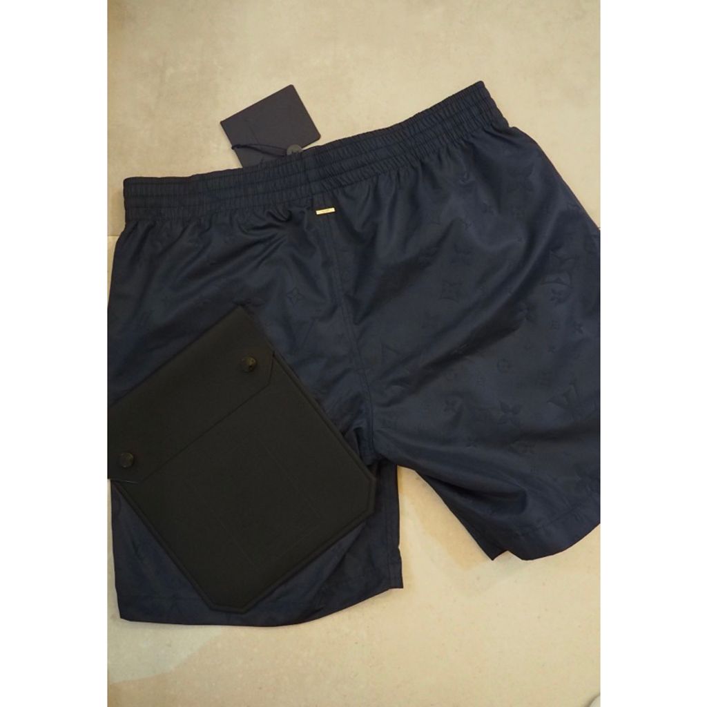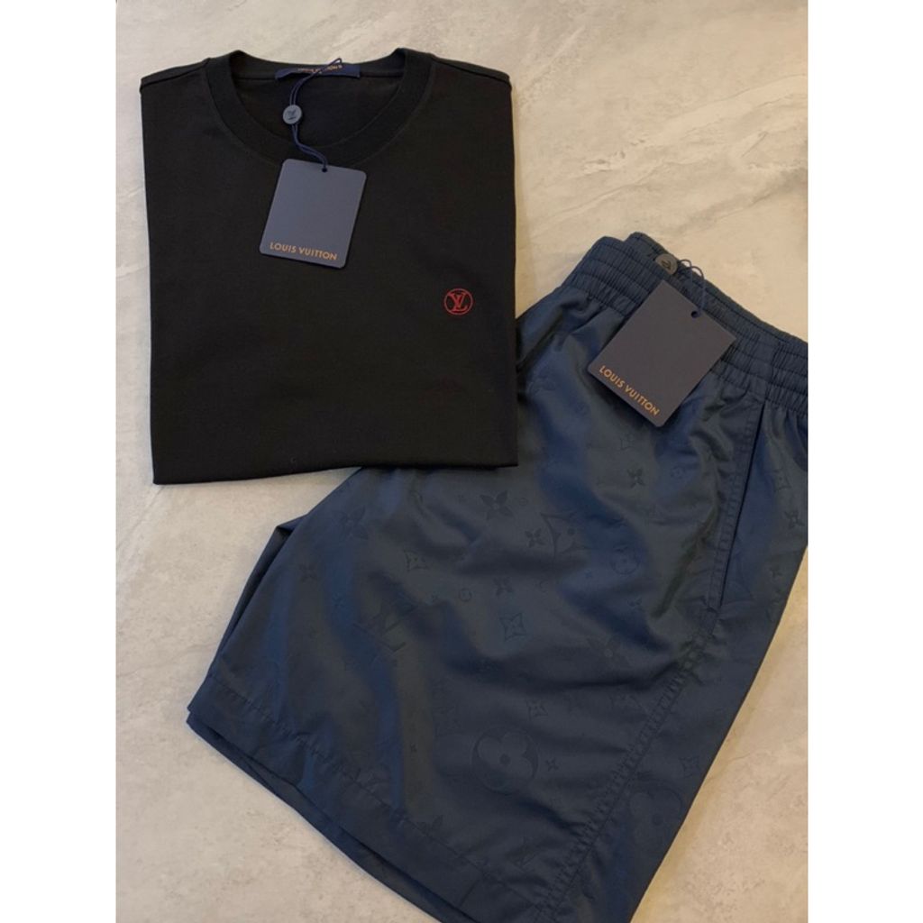 Limit精品✔️Louis Vuitton LV 經典 黑紅素t 深藍滿版設計 海灘褲 限量商品