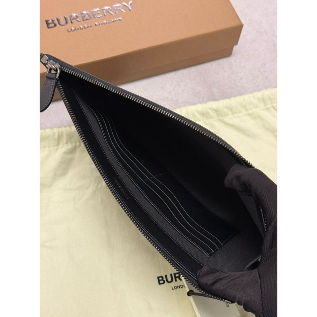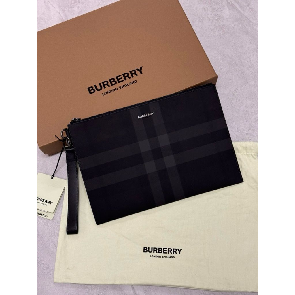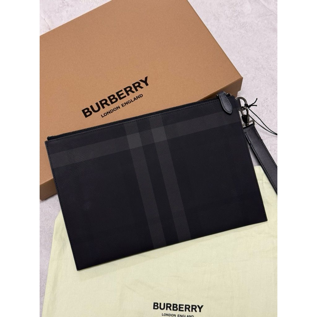 Limit精品✔️Burberry 經典 黑色格紋設計 搭配立體字母 男生 手拿包