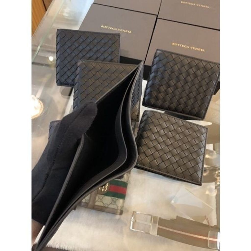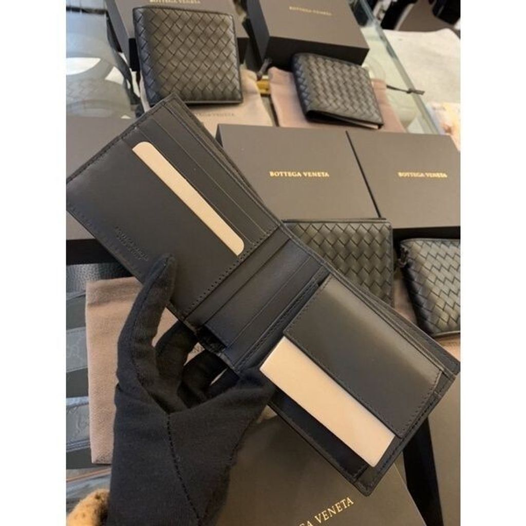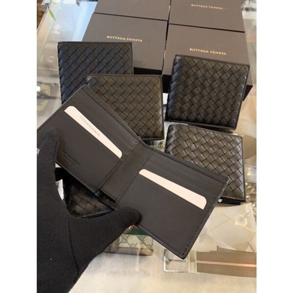 Limit精品✔️ Bottega Veneta BV 經典 小編織 大編織 牛皮 八卡 零錢袋 黑色 男款 短夾 皮夾