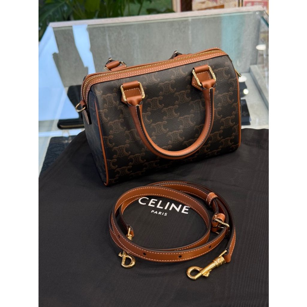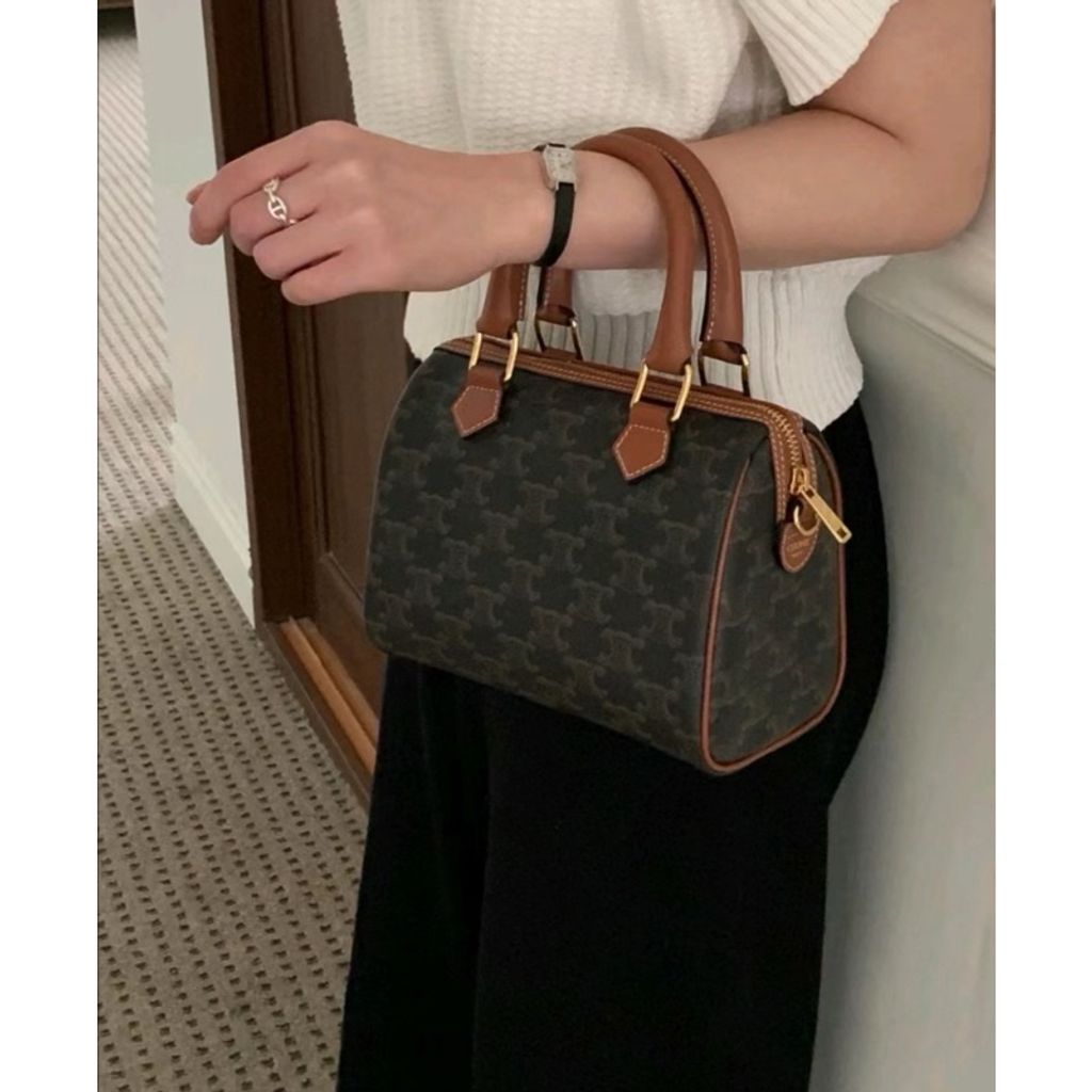 Limit精品✔️Celine 經典老花配色 標誌印花牛皮革小號波士頓包