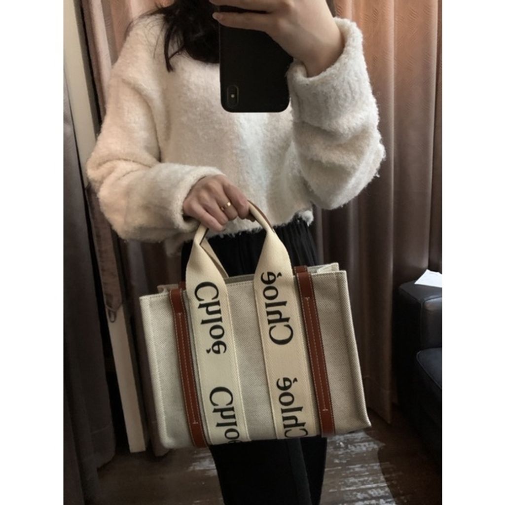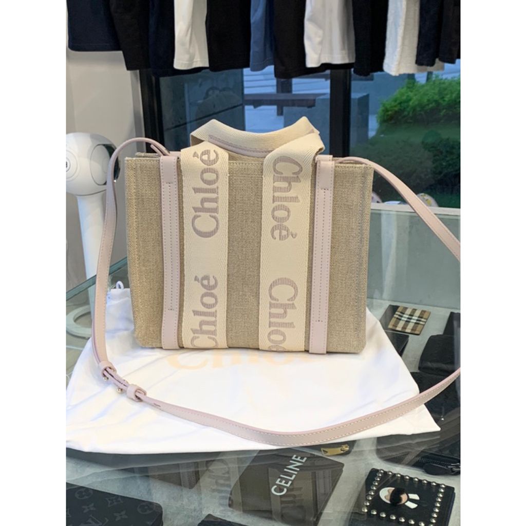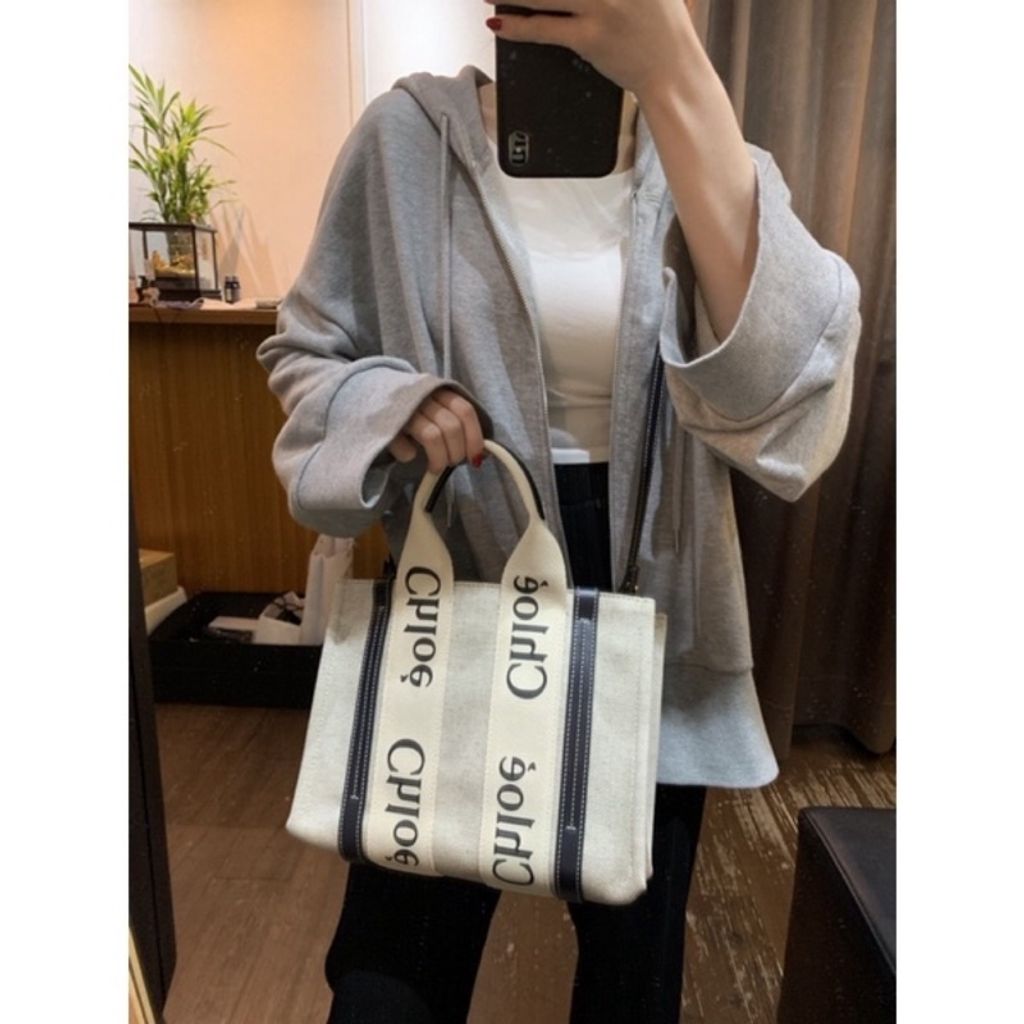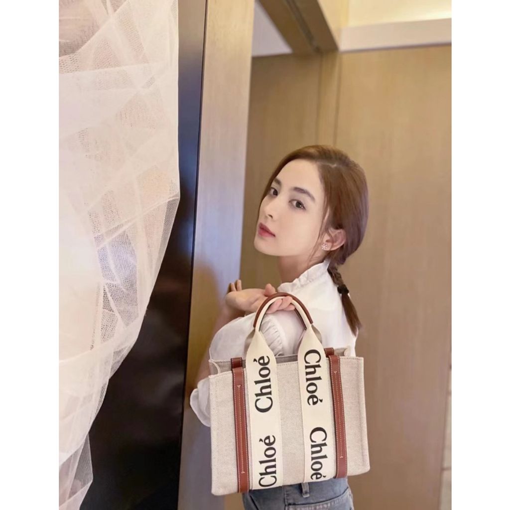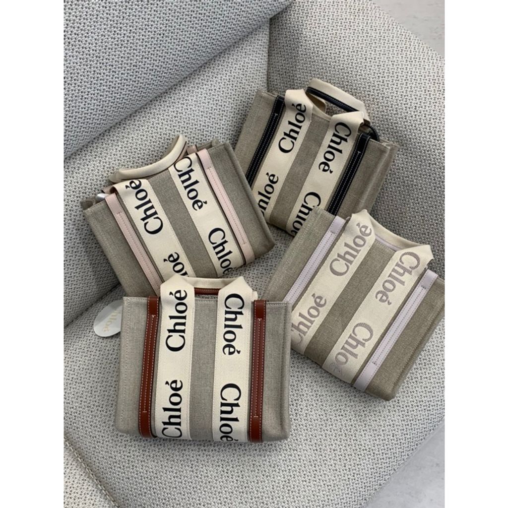 Limit精品✔️Chloe Small Woody經典小款皮革飾邊帆布字母設計附背帶 手提 側背包 托特包 現貨