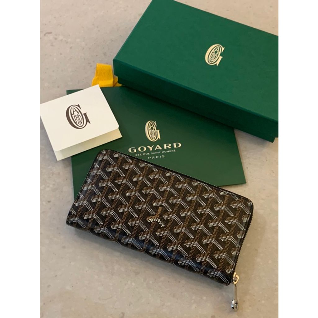 Limit精品✔️Goyard 經典滿版老花Logo設計 黑棕配色搭配內裏拼接黃色 男生 男款 皮夾 拉鍊長夾