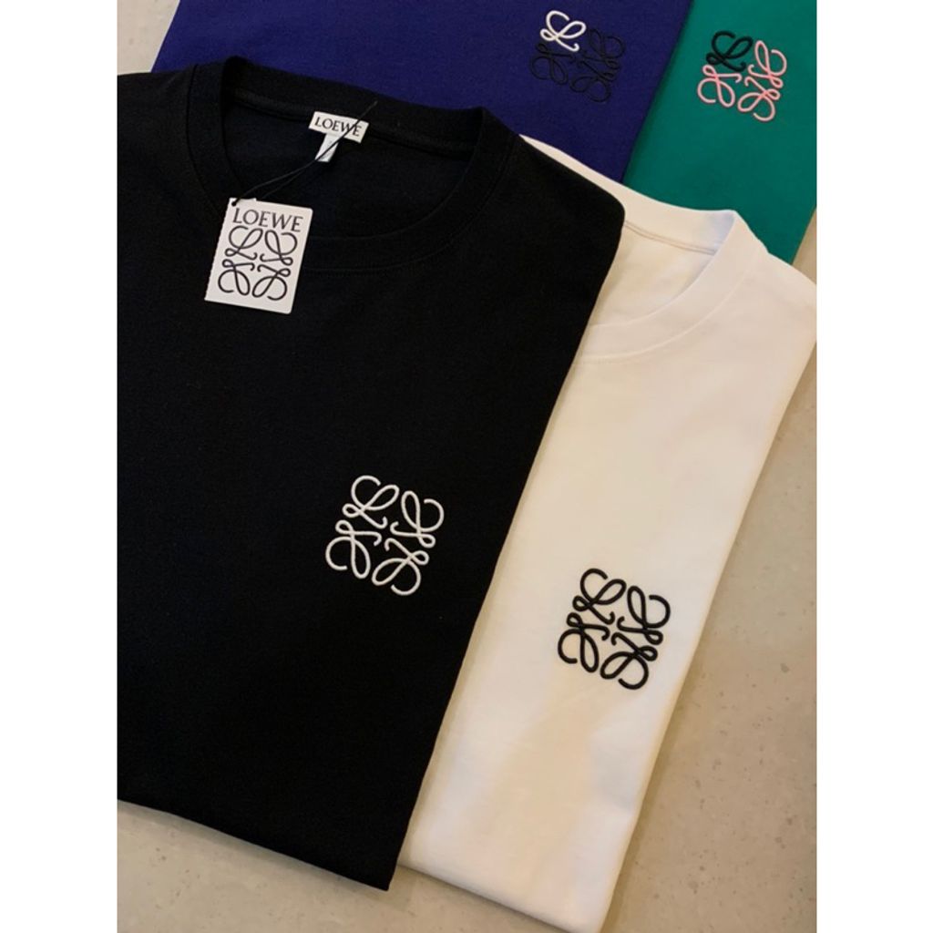 Limit 精品✔️Loewe 經典 刺繡小logo設計 黑、綠色、藍色、白色、天空藍 素t 短袖T恤上衣