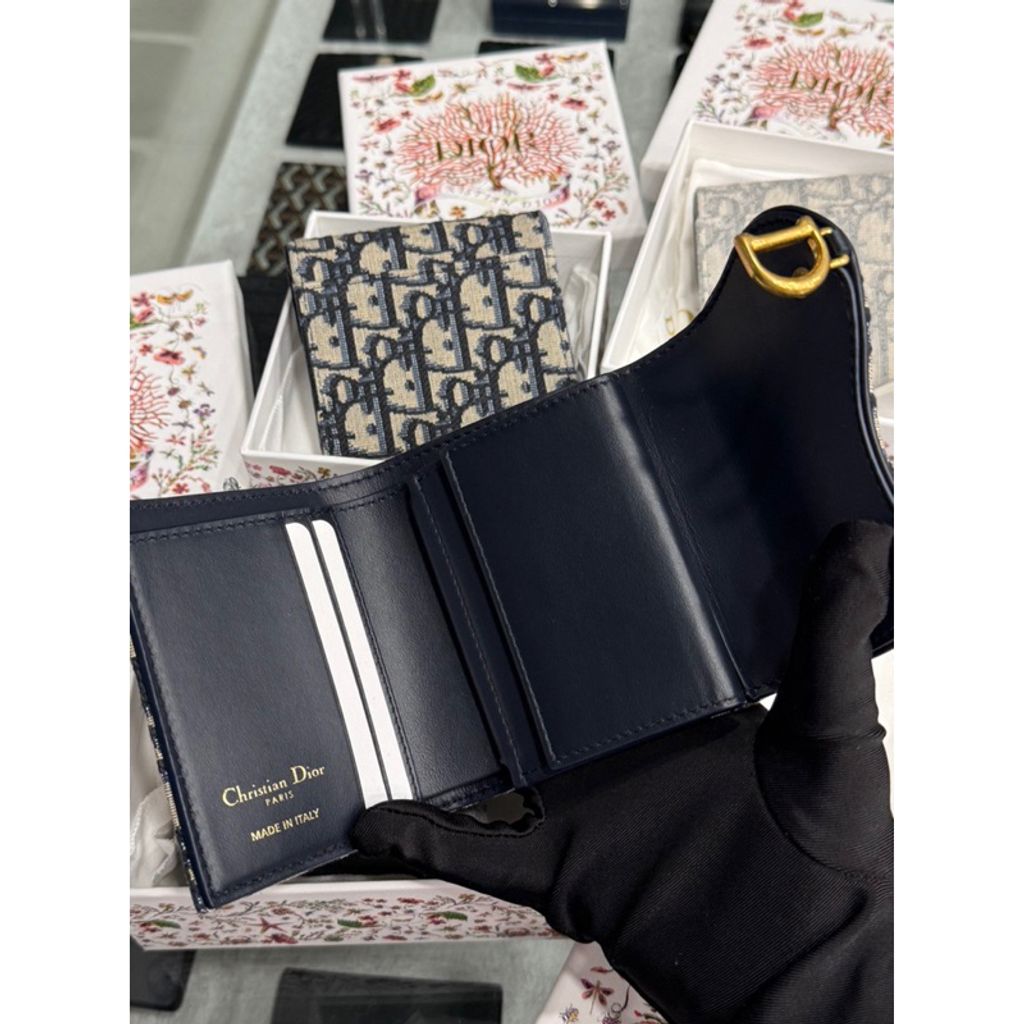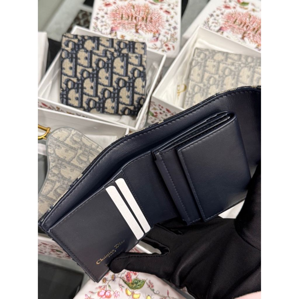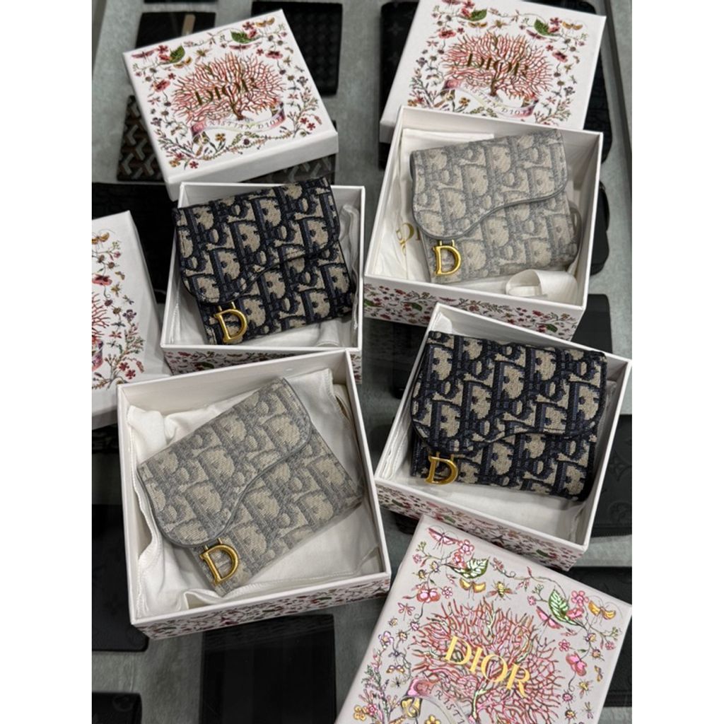 Limit精品✔️Dior 經典刺繡老花設計 深藍、灰色 馬鞍 錢包 國外限定 三折短夾