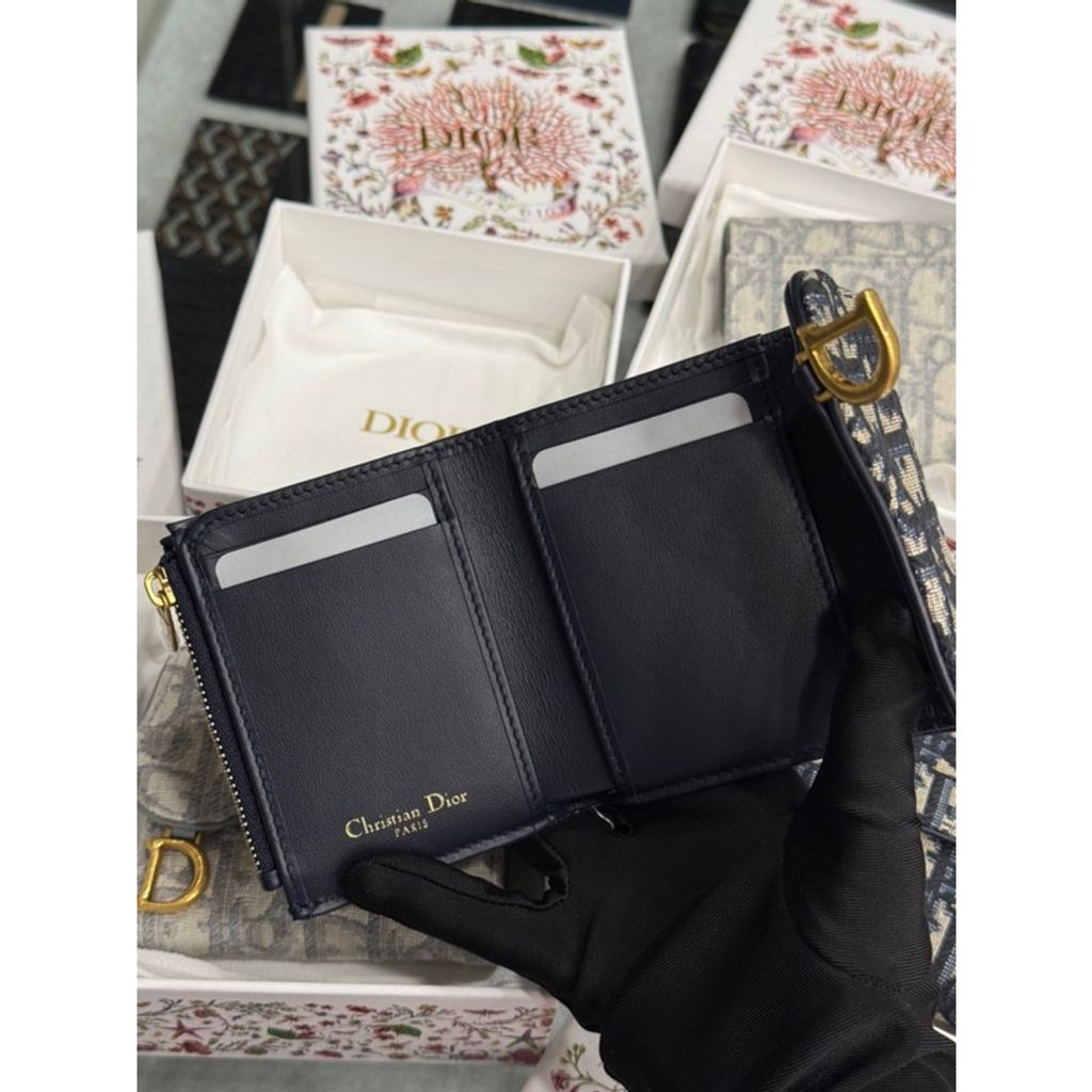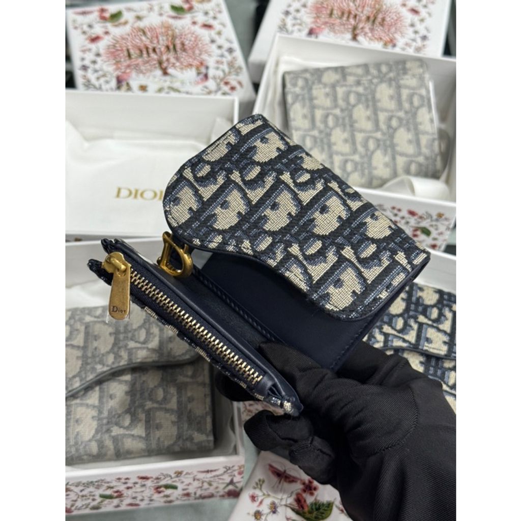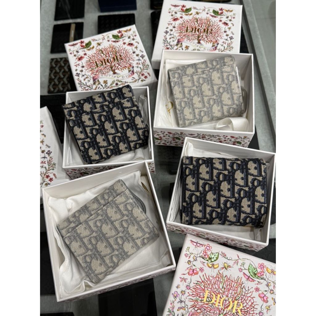Limit精品✔️Dior 經典刺繡老花設計 深藍、灰色 馬鞍 錢包 國外限定 三折短夾